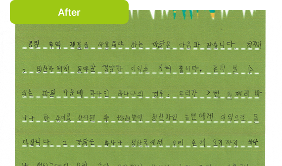알아보기 힘든 글씨체 교정 (일반적으로 단계별 수업 과정 중 90% 교정 효과) |